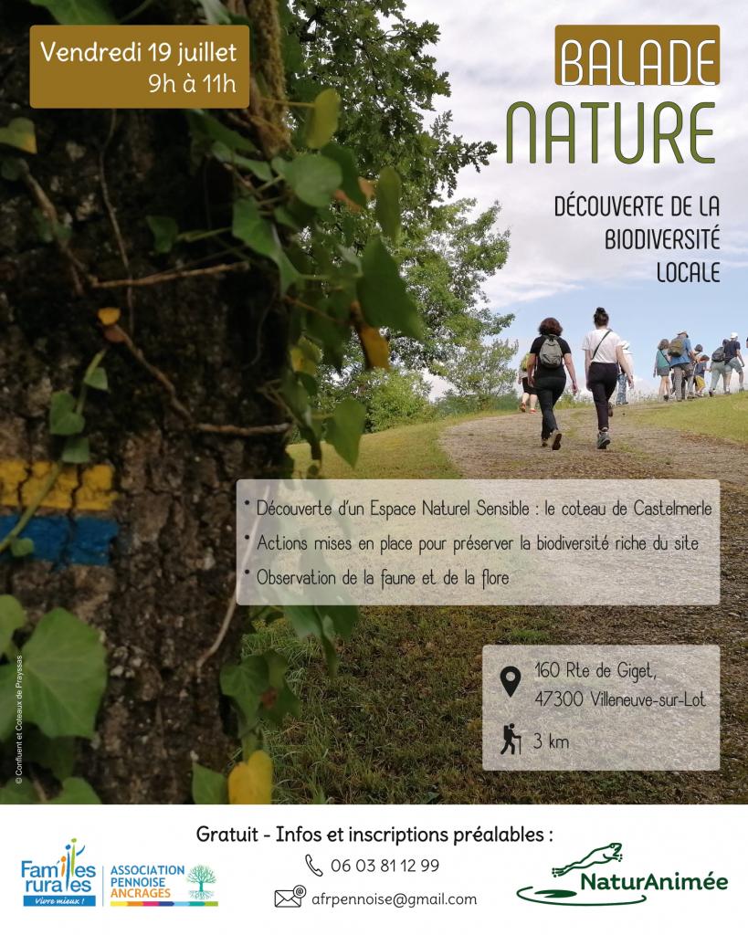 Pour aller à la rencontre de la biodiversité, suivez Juliette de NaturAnimée, à Castelmerle, le vendredi 19 juillet à 9h. Informations et inscription auprès de l’Espace de Vie Sociale Ancrages à Penne d’agenais au 06 03 81 12 99 ou afrpennoise@gmail.com