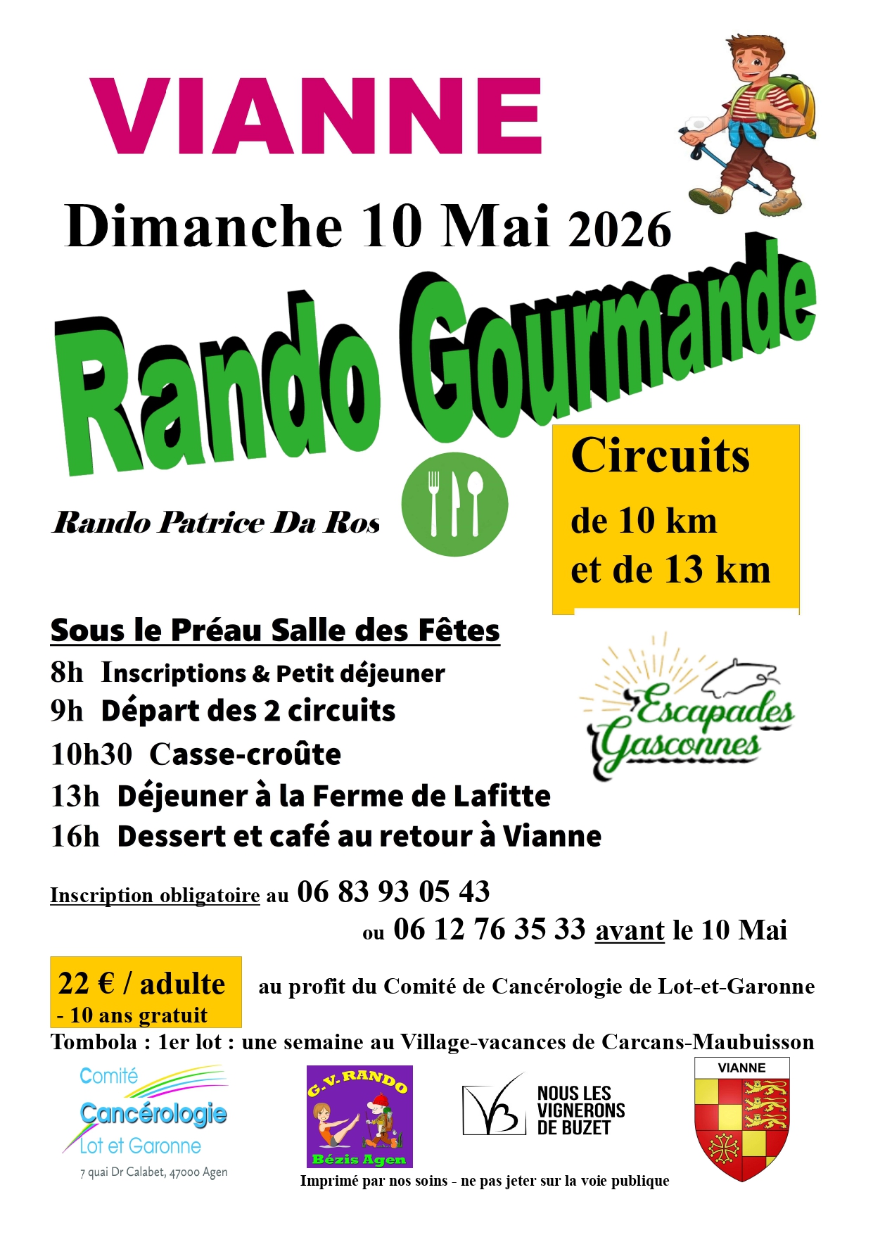 Randonnée Gourmande organisée au profit du Comité de Cancérologie de Lot-et-Garonne.
