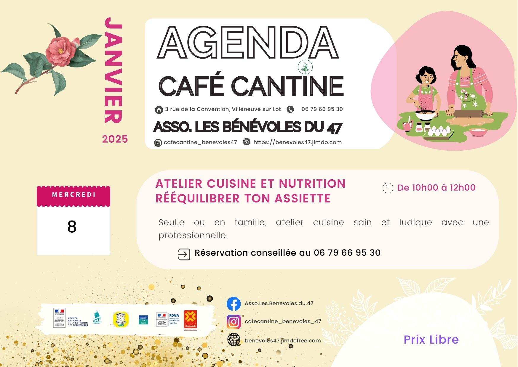Vous souhaitez prendre des bonnes habitudes alimentaires en ce début d’année, et permettre à vos enfants d’être partie prenante de ce changement, cet atelier cuisine est fait pour vous.