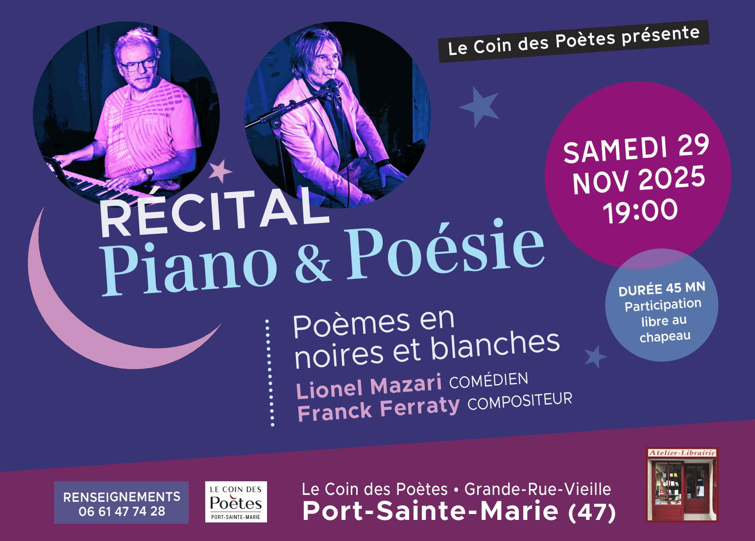 Avec Lionel Mazari (comédien) et Franck Ferraty (pianiste, compositeur).
