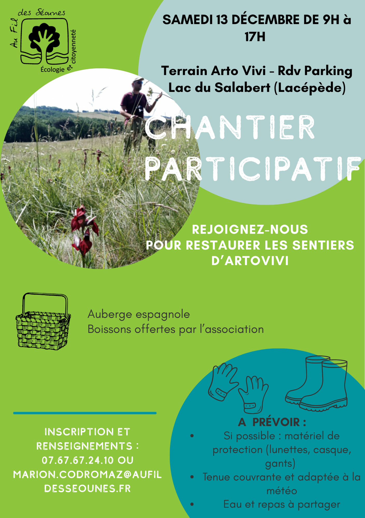 Le 13 décembre, venez participer à notre chantier participatif pour restaurer et rouvrir les sentiers d’Artovivi, à Lacépède.