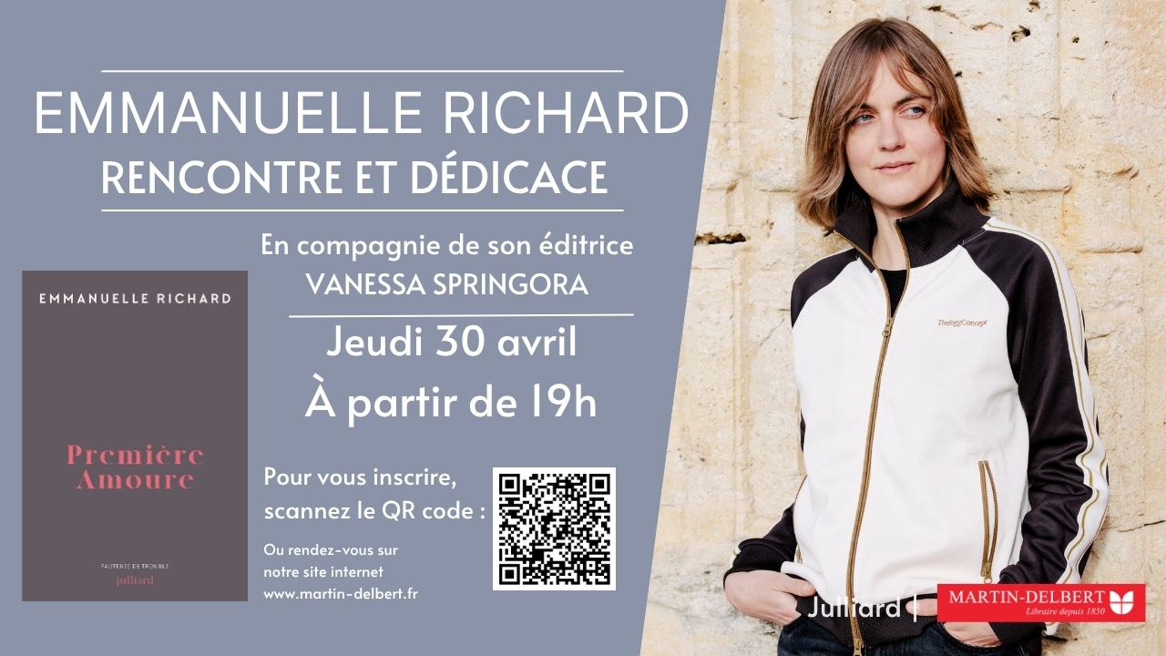Nous sommes ravis de vous annoncer une rencontre en compagnie d’Emmanuelle Richard lors d’une soirée exceptionnelle le jeudi 30 avril 2026 de 19h à 21h, suivie de la dédicace de son roman Première amoure aux éditions Julliard, collection Fauteuses de troubles.