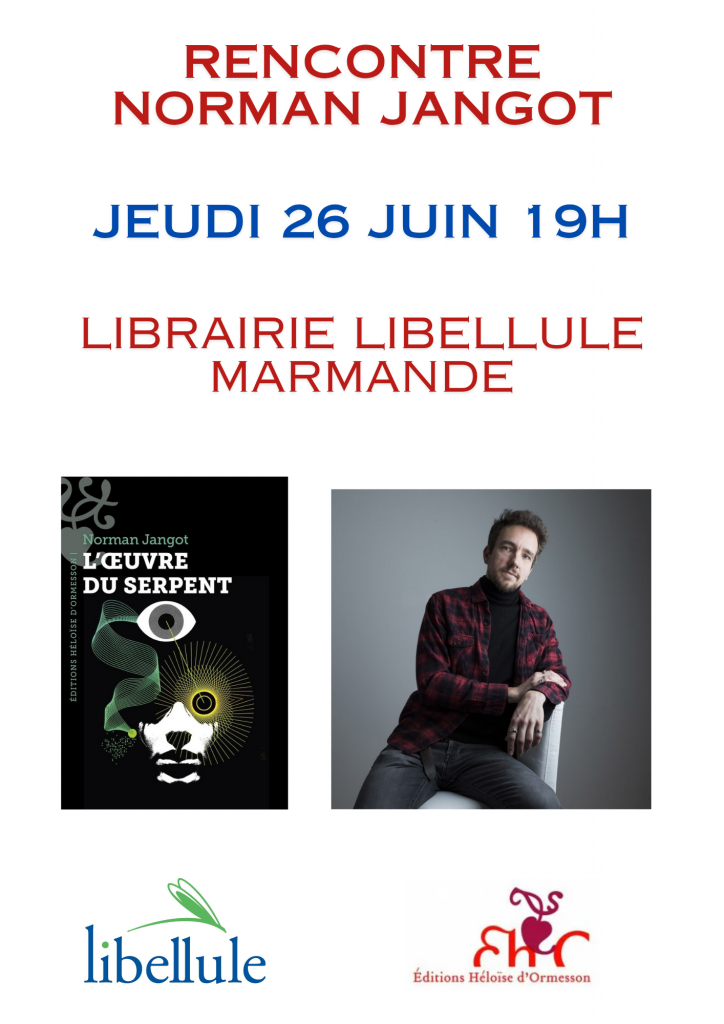 Nous sommes ravis de vous annoncer la venue de l’auteur Norman Jangot le jeudi 26 juin à 19h pour son dernier roman  » L’œuvre du serpent  » !