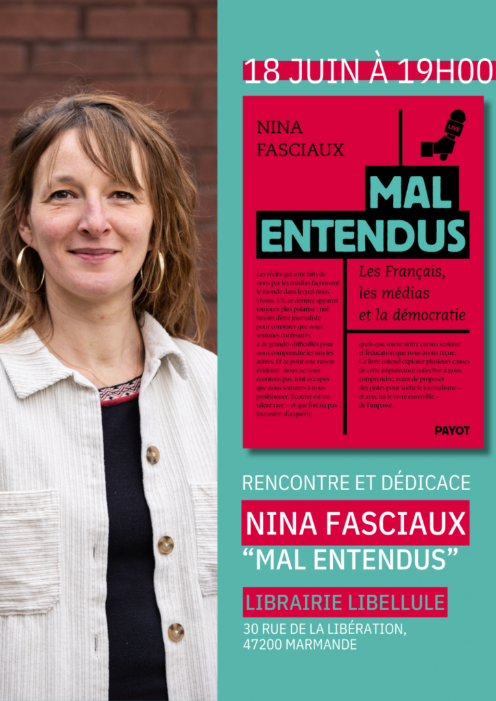 Elle vient de publier son premier essai » Mal Entendus » aux éditions Payot. S’appuyant sur une enquête qu’elle a menée sur un échantillon de français sur leur rapport aux médias et sur ce qu’ils espèrent de ces derniers, sur son expérience et sur les pensées de divers journalistes, Nina Fasciaux y prône une pensée claire et salvatrice : les médias doivent être plus à l’écoute des citoyens et doivent rassembler autour d’un socle commun d’informations pour mieux construire ensemble l’avenir.