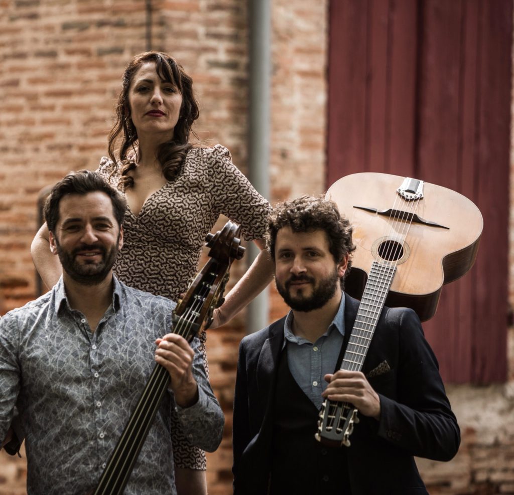 Royal Swing Trio, c’est le plus Rock’nRoll des groupes de jazz manouche! Django Reinhardt, Ella Fitzgerald, Cole Porter, Jimmy Lunceford, Blossom Dearie, ils traversent les grands thèmes du Jazz et du Swing des années 20 à 50 avec une énergie et une joie incroyable!Le charisme et la voix envoûtante d’Amélie Barthe captive l’audience et les musiciens de haut vol qui l’accompagnent : Tom Bernus à la guitare, Fabrice Renailler à la contrebasse sont de vrais virtuoses qui surprennent avec des rythmiques et des solos à couper le souffle !