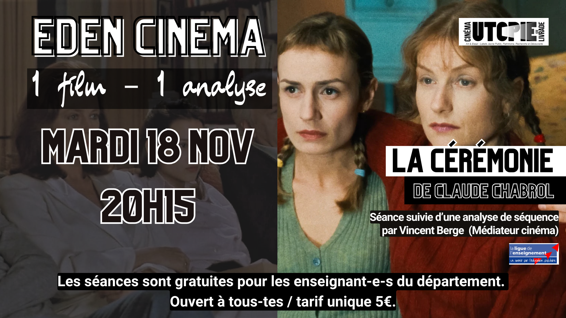 Projection du film La cérémonie de Claude Chabrol (avec Isabelle Huppert, Sandrine Bonnaire) présentée par Vincent Berge, médiateur cinéma à La Ligue de l’Enseignement du 47.