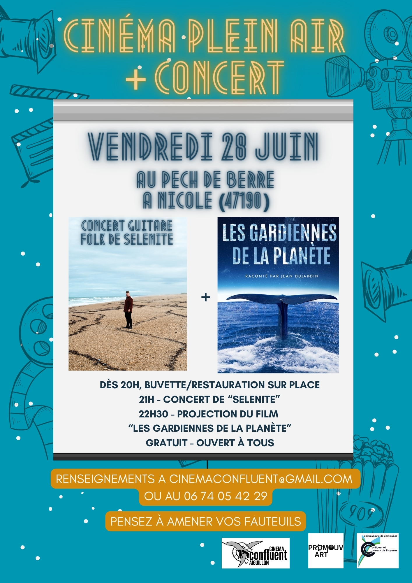 Concert de Guitare Folk par Selenite + Projection du film Les gardiennes de la planèteDès 20h – Buvette/Restauration possible sur place21h – Concert de Guitare Folk par SeleniteSi