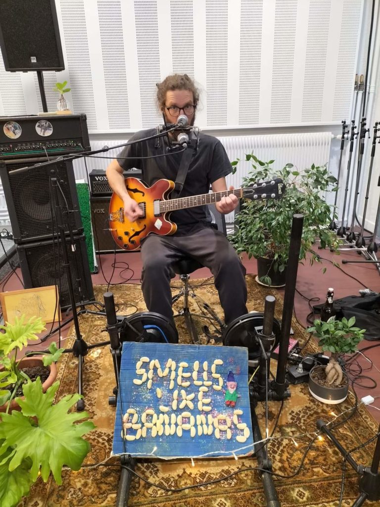 Smells like bananas (Carlos Boeboel), auteur-compositeur-interprète, est actuellement en résidence au centre culturel pour préparer un set en solo, sous l’œil critique mais bienveillant du conseiller artistique Michel Vivoux.