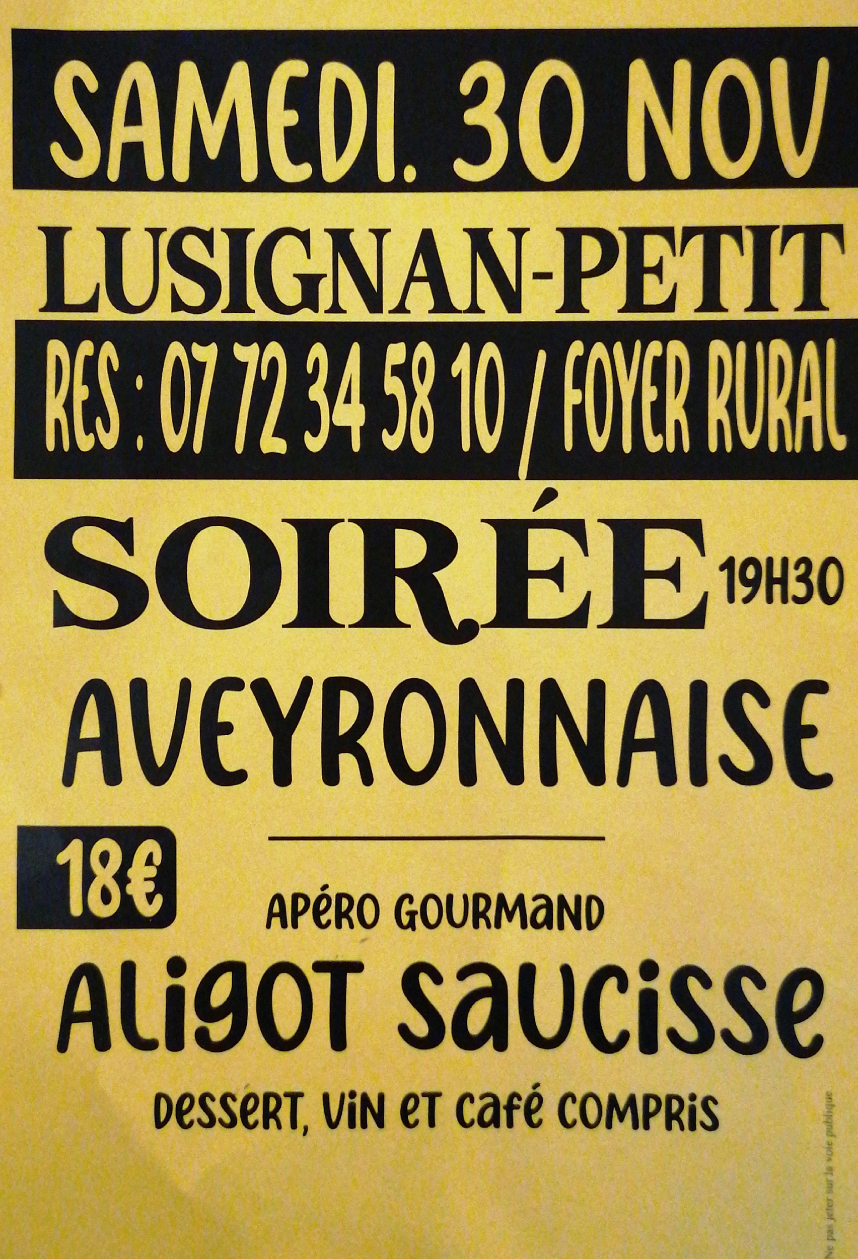 L’association du foyer rural de Lusignan-Petit vous propose une soirée Aveyronnaise.