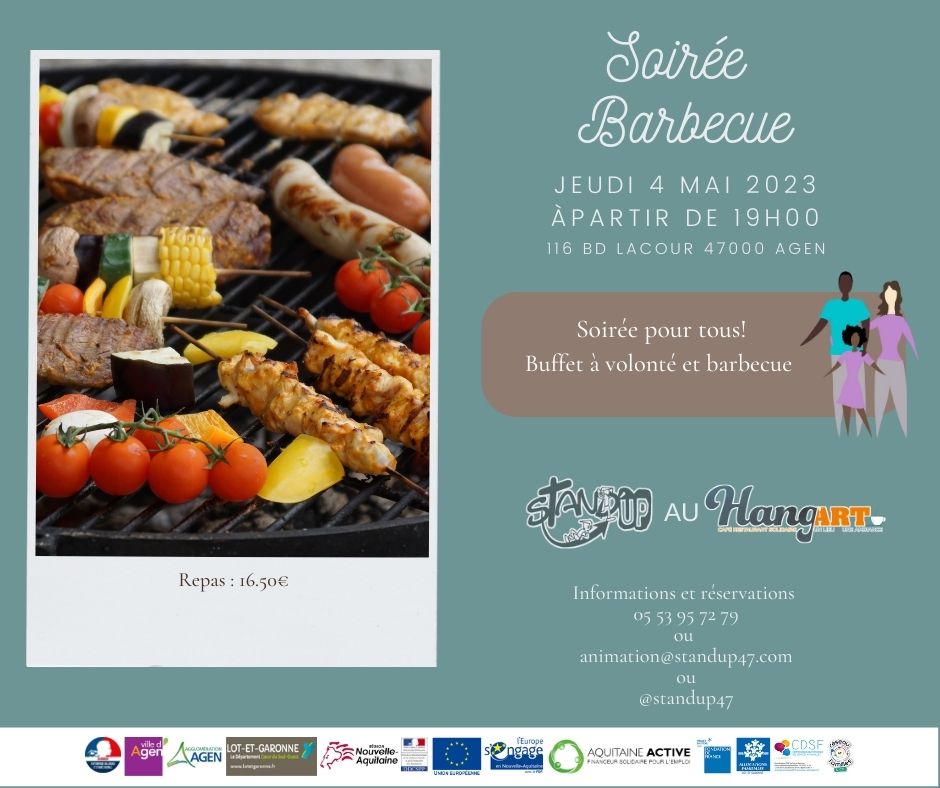 Loisirs Soirée Barbecue Le Hang'art - Agen 116 Boulevard Edouard Lacour Agen Voir tous les événements se déroulant ici le 4 mai 2023 à partir de 19h 16.50€ Venez nombreux pour notre soirée barbecue ! Stand'UP 06 95 77 25 56 animation@standup.com