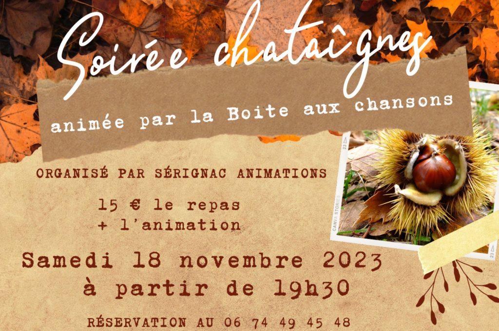 Soirée châtaigne animée par la Boîte aux chansons, organisée par l’association Sérignac s/G Animations.