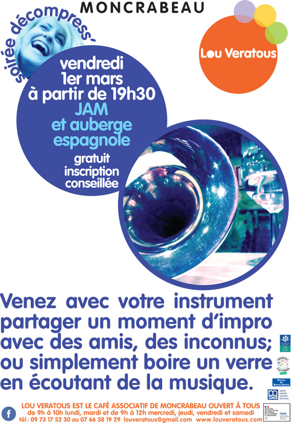 Vendredi 1er mars, à partir de 19h30 nous vous proposons de participer à une soirée JAM (scène ouverte).