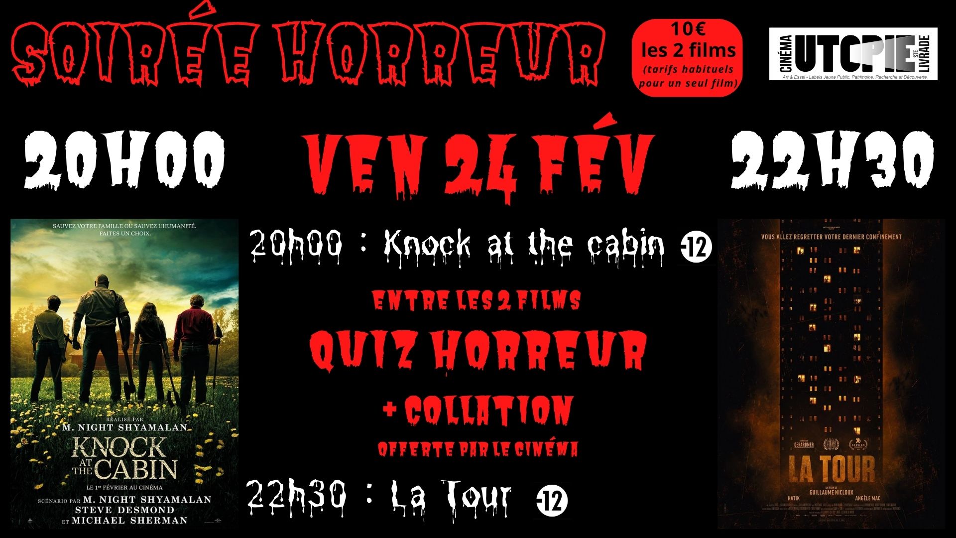ENTRE LES 2 FILMS : QUIZ HORREUR avec plein de cadeaux à gagner (places, affiches, coffrets,…) + Collation offerte par le cinéma
