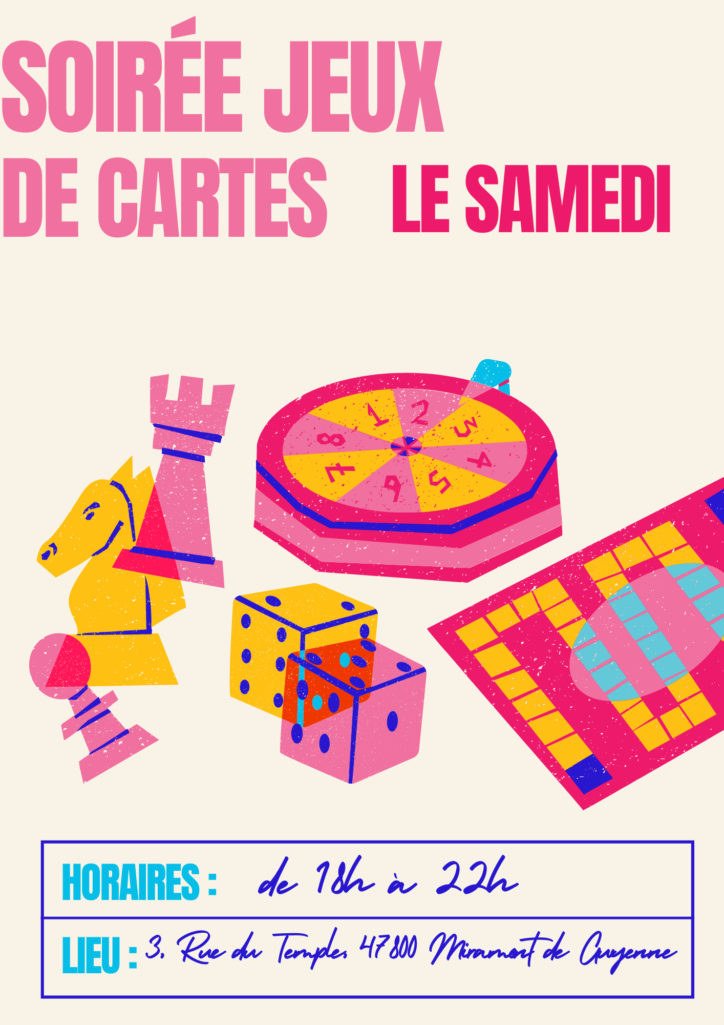 Effectivement l’association vous proposera chaque samedi à partir du 28 mars une soirée jeux de cartes (chacun(e) apporte des jeux).