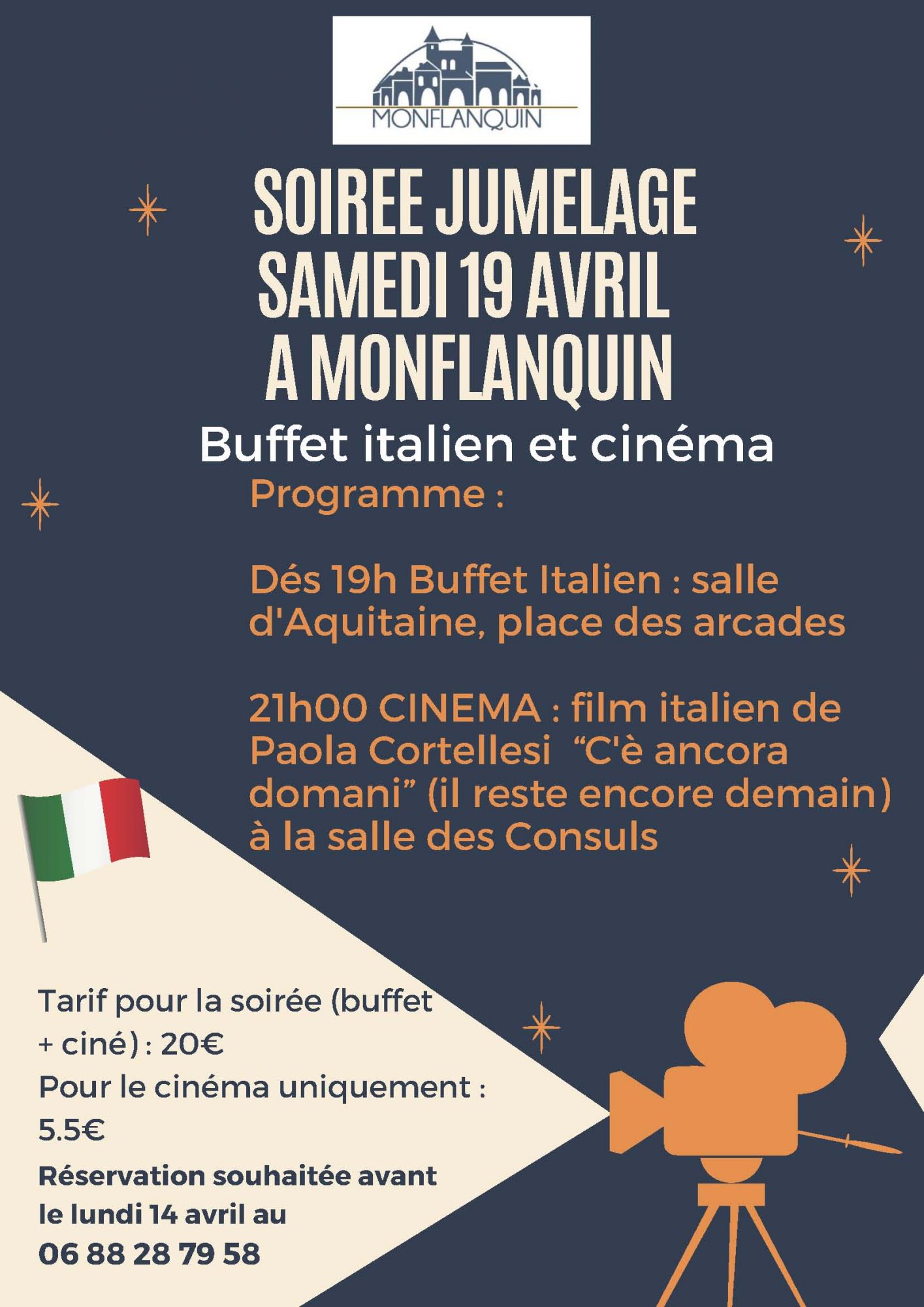 Au programme : buffet italien suivi de la projection du film italien « Il reste encore demain ».