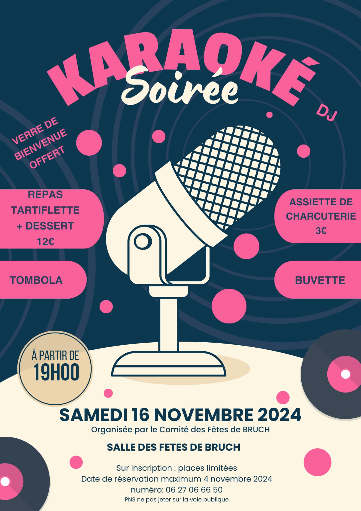 Le Comité des Fêtes de Bruch vous invite à une soirée inoubliable pleine de musique, de bonne humeur et de gourmandises !