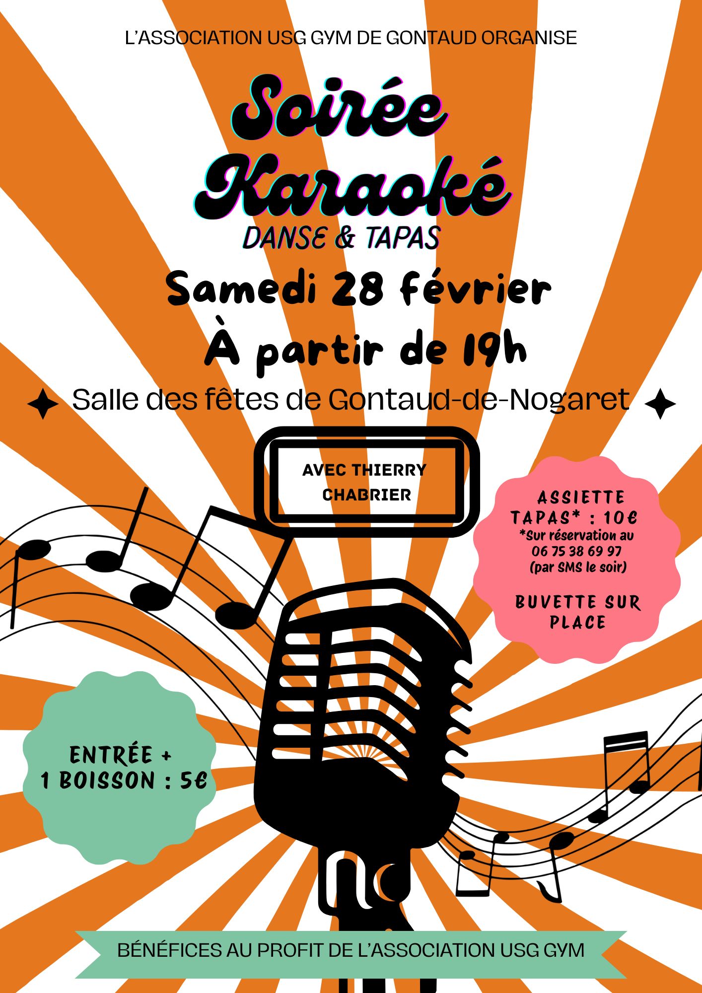 Soirée Karaoké animé par Thierry Chabrier, organisé par le Club de Gym de Gontaud-de-Nogaret.