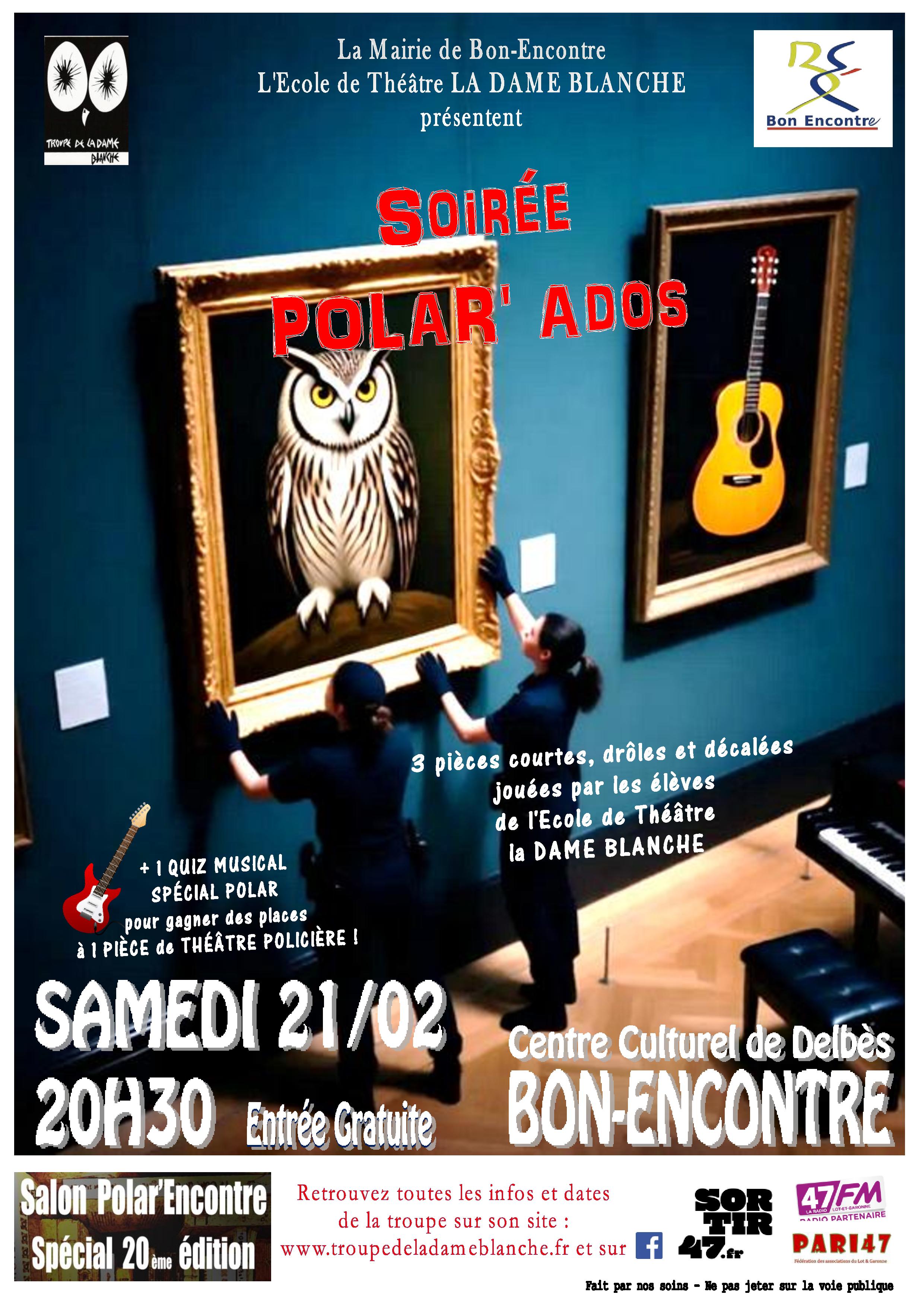 En partenariat avec la Mairie de Bon-Encontre et en marge du 20ème Salon du Polar qui aura lieu les 28 février et 1er mars,