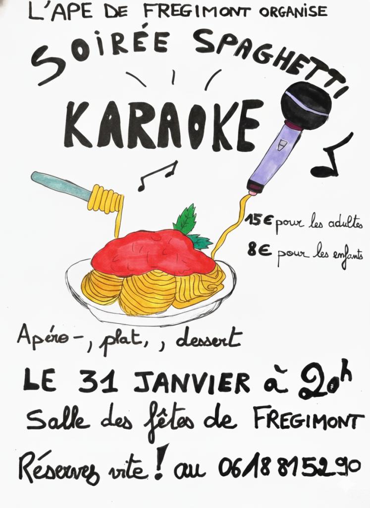 L’APE de Frégimont organise cette année encore sa soirée Spaghetti et Karaoké !