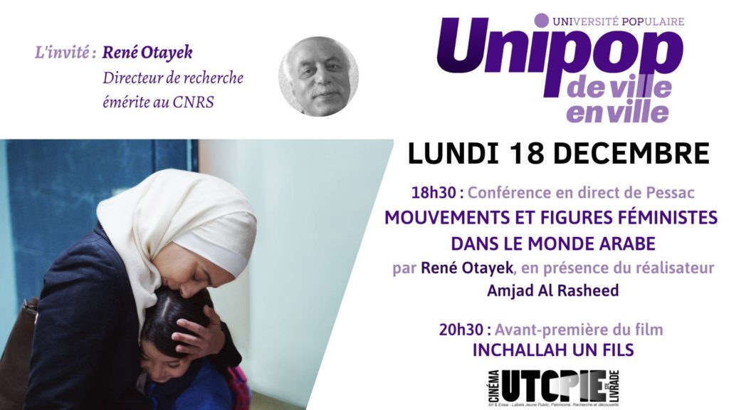 19h-20h : Conférence « Mouvements et figures féministes dans le monde arabe » par René Otayek.