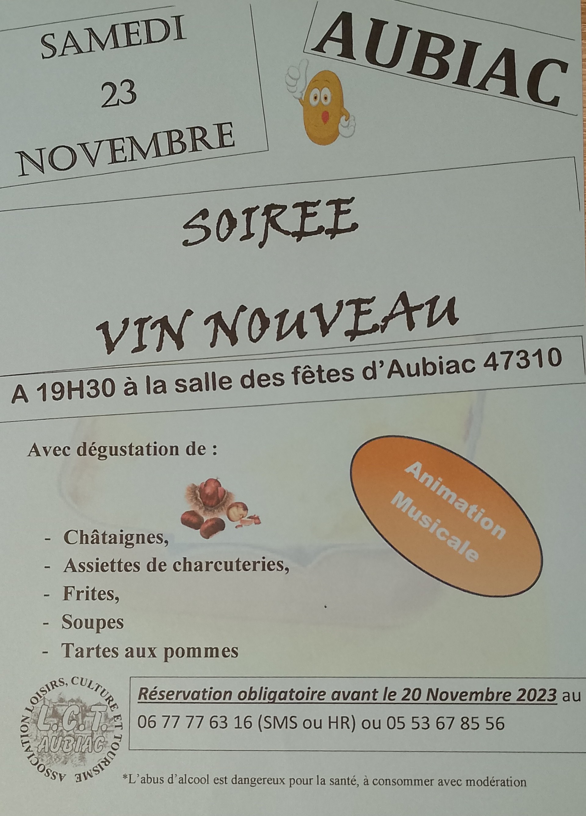 Soirée Vin Nouveau organisée par l’association LCT à Aubiac.