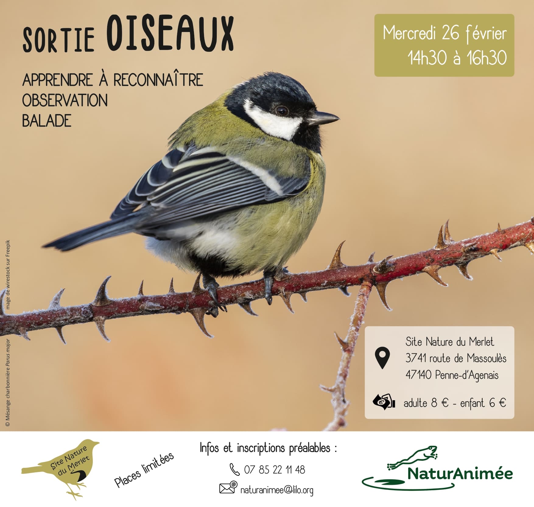 Inscription obligatoire par sms, messenger, mail…ou via le formulaire suivant : https://v3iw6tqm.forms.app/sortieoiseaux-merlet