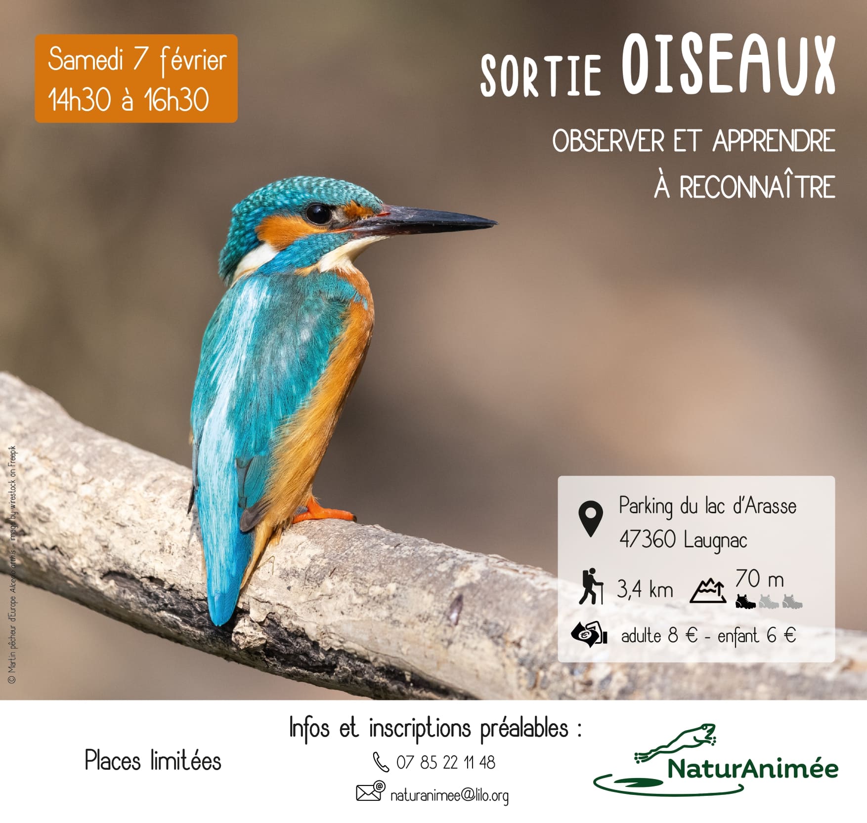 Réservation obligatoire par sms, messenger, mail…ou via le formulaire suivant : https://v3iw6tqm.forms.app/oiseaux