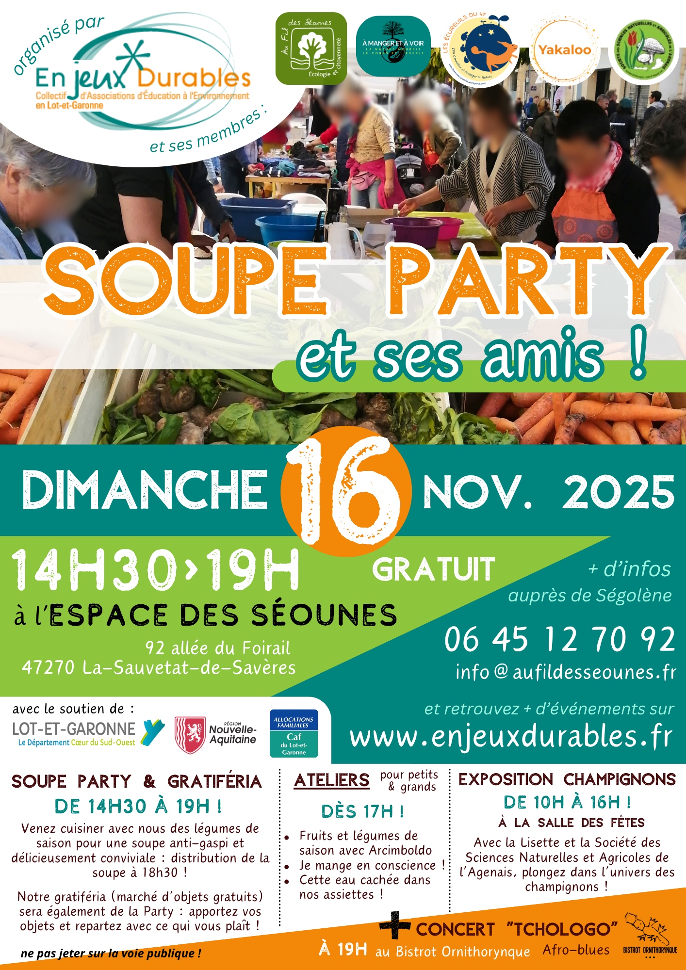 Le dimanche 16 novembre, participez à notre traditionnelle Soupe Party, à l’Espace des Séounes.