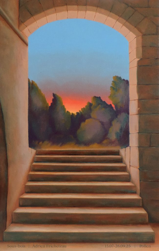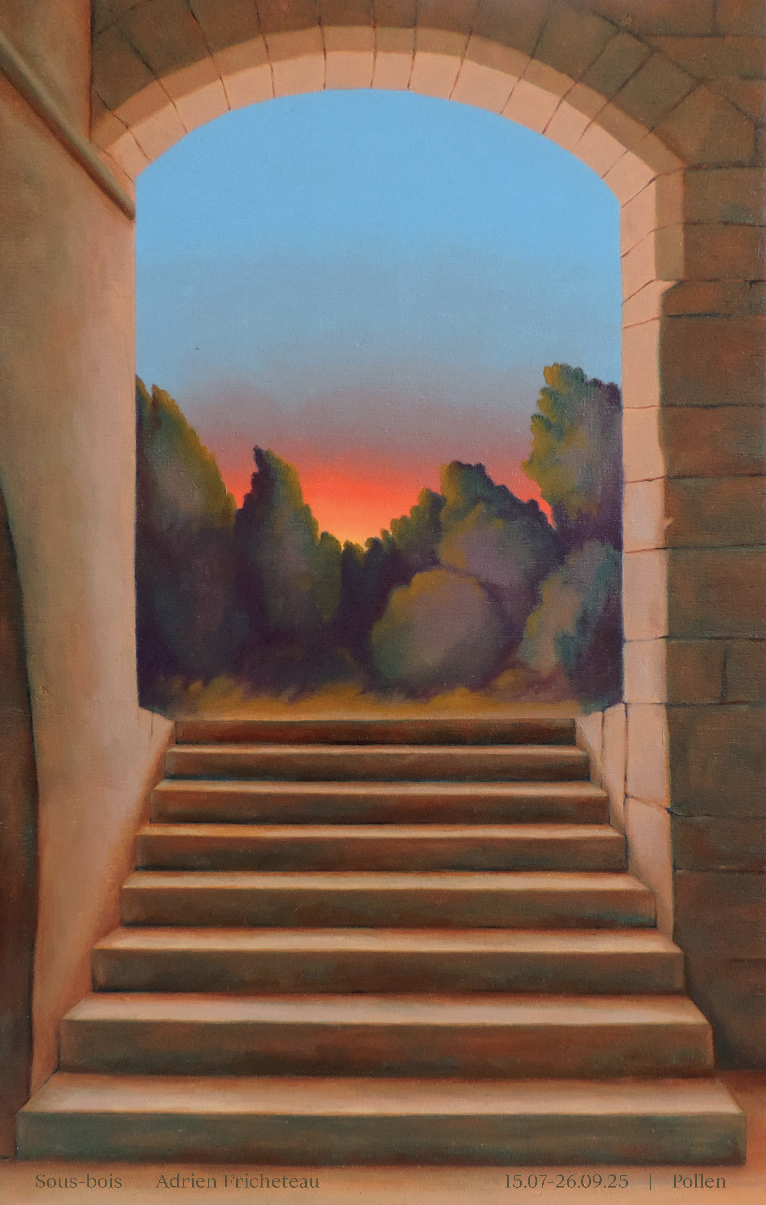 L’exposition Sous-bois présente le travail réalisé lors de la résidence à Pollen. Elle marque le début d’une recherche nouvelle sur les supports : en lieu et place des habituelles matières issues du commerce, ceux-ci sont issus de matériaux de rebut, de chutes de meubles, d’assemblages de bois récupérés. Les pièces deviennent des objets hybrides, ambigus, à la frontière entre la peinture, la sculpture et le mobilier. »