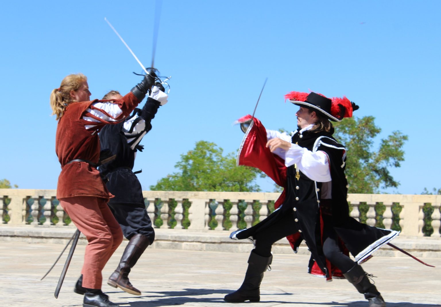 Assistez aux combats à l’épée et aux cascades impressionnantes des Mousquetaires du Roi contre les brigands.