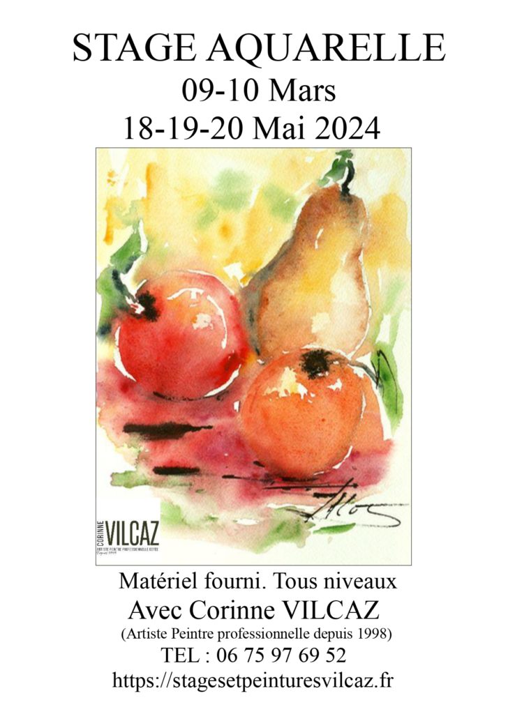 Dans une ambiance toujours conviviale et sympathique, venez apprendre les rudiments de l’aquarelle avec Corinne Vilcaz, artiste peintre professionnelle qui vous partagera ses compétences et ses savoirs,