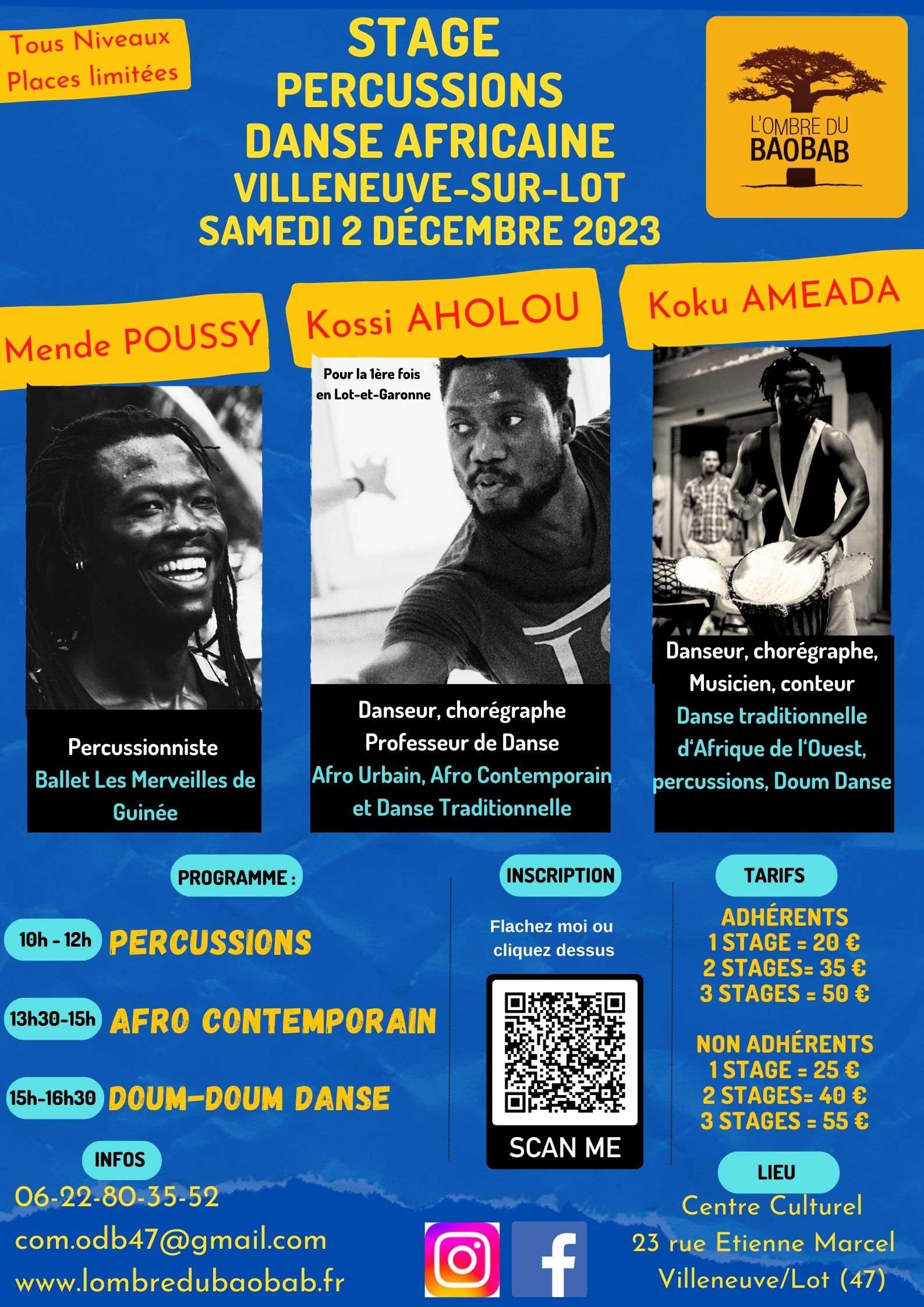 L’Ombre du Baobab organise son 1er stage de la saison et a le plaisir d’accueillir :