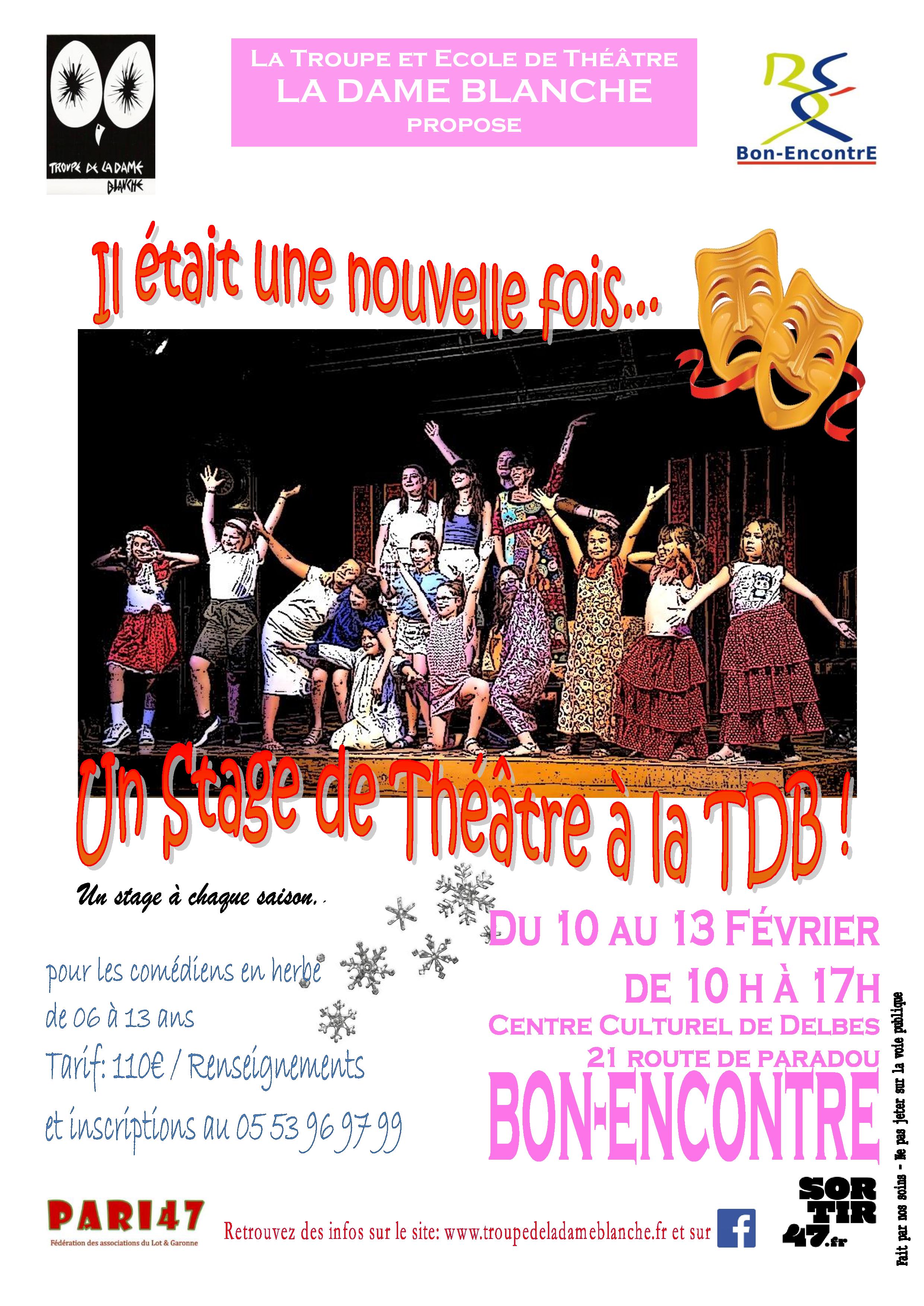 La Troupe et École de Théâtre La Dame Blanche de Bon-Encontre propose à nouveau un stage de théâtre pour les comédiens en herbe ou confirmés de 6 à 13 ans !