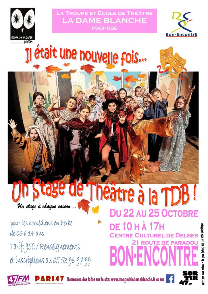 La Troupe et École de Théâtre La Dame Blanche de Bon-Encontre propose à nouveau un stage de théâtre pour les comédiens en herbe ou confirmés de 6 à 14 ans !