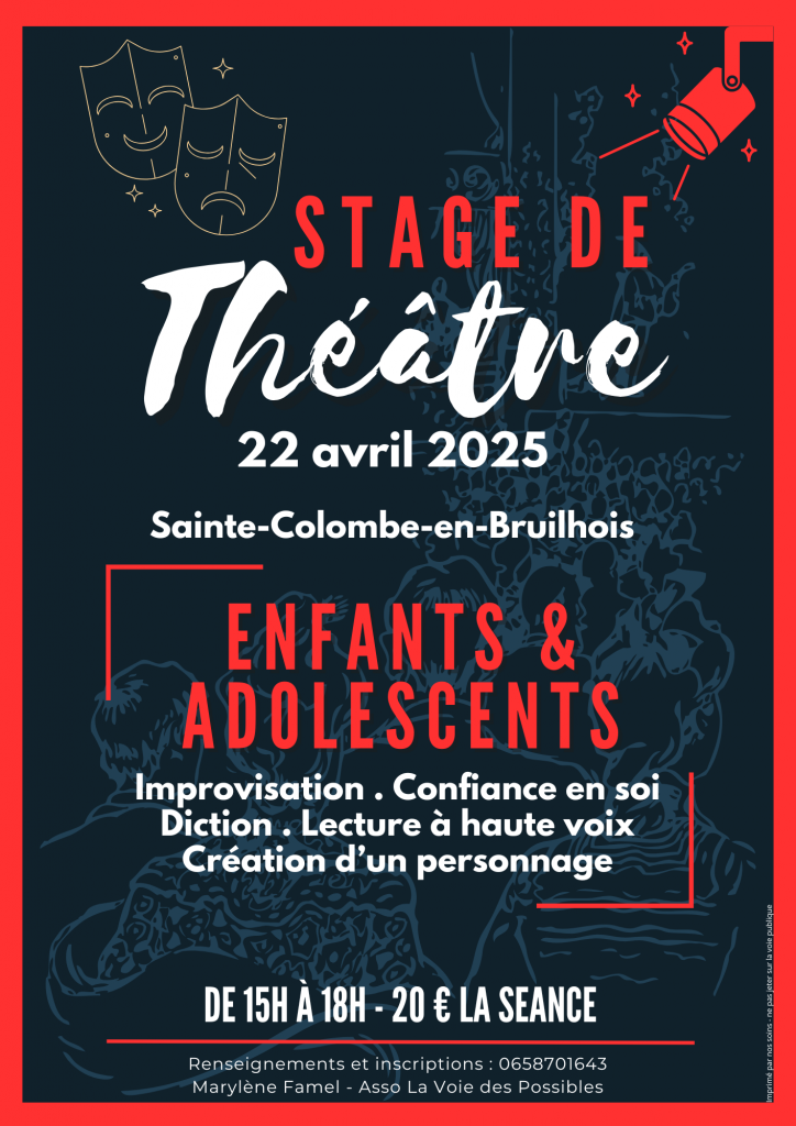 Animé par une comédienne professionnelle, Marylène Famel (plus 25 ans d’expériences).
