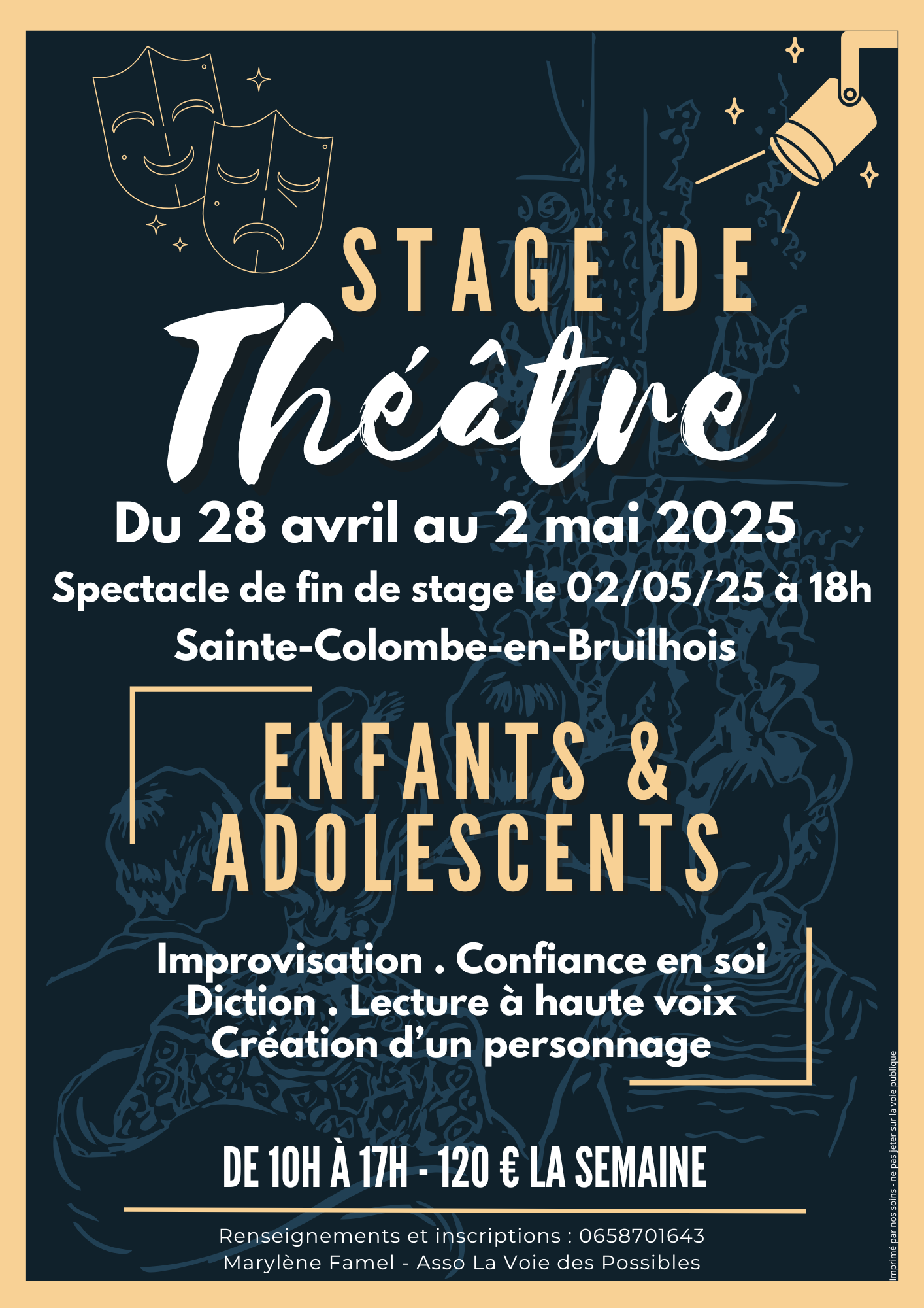 Encadrée par Marylène Famel, comédienne professionnelle depuis plus de 25 ans.