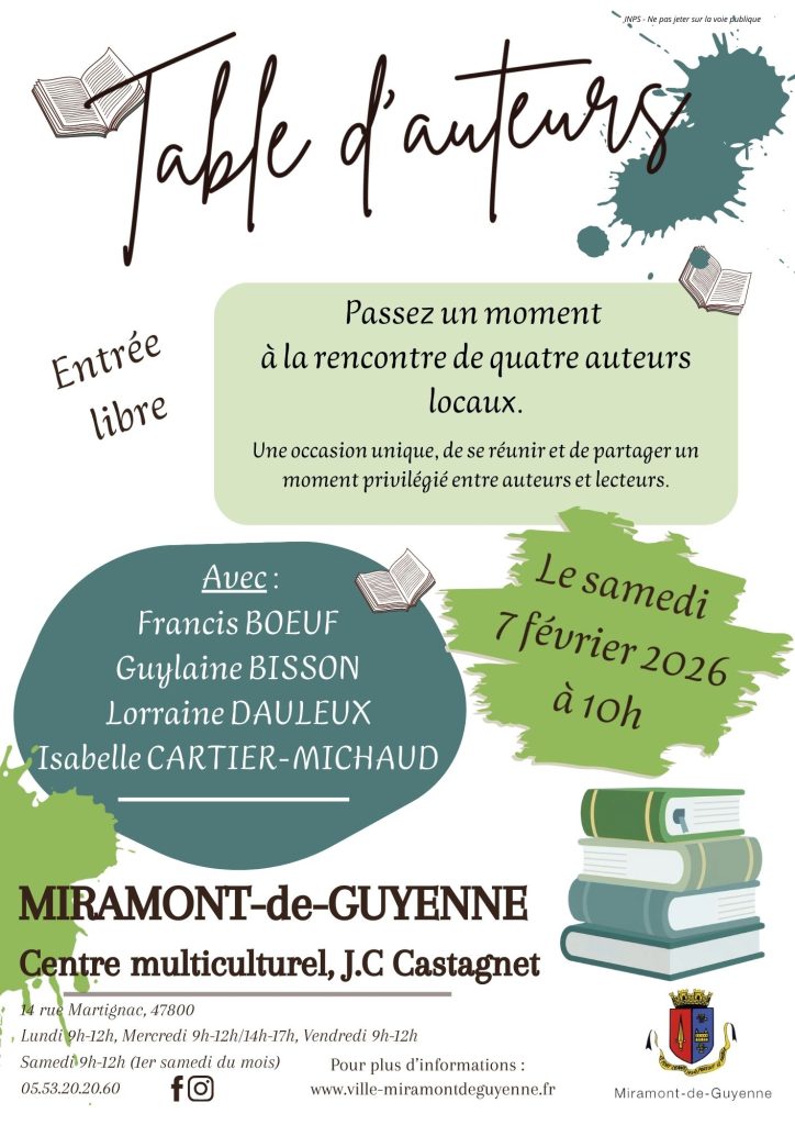 Passez un moment à la rencontre de nos auteurs locaux, une occasion unique, de se réunir et de partager un moment privilégié, d’approfondir la découverte d’une œuvre et d’un univers fascinant entre auteurs et lecteurs.