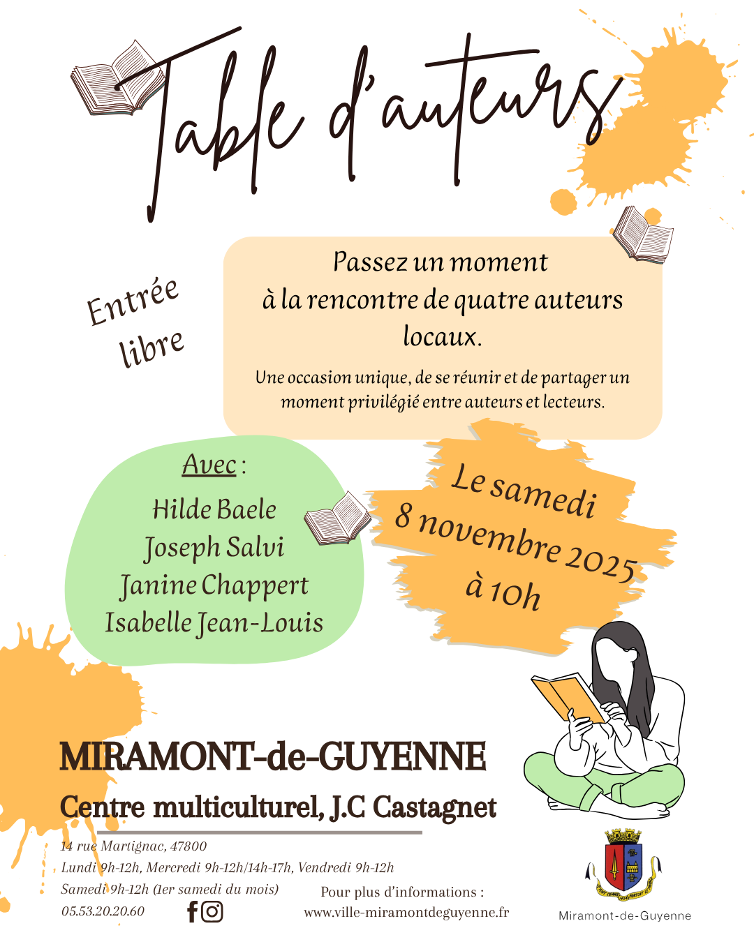 Passez un moment à la rencontre de nos auteurs locaux, une occasion unique, de se réunir et de partager un moment privilégié, d’approfondir la découverte d’une œuvre et d’un univers fascinant entre auteurs et lecteurs.
