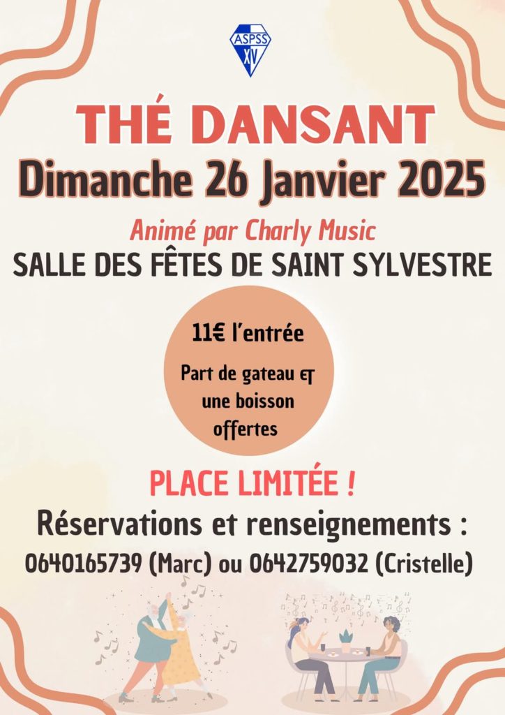 Thé Dansant organisé par l’ASPSS Rugby animé par Charly Music à la salle des fêtes de Saint Sylvestre sur Lot.
