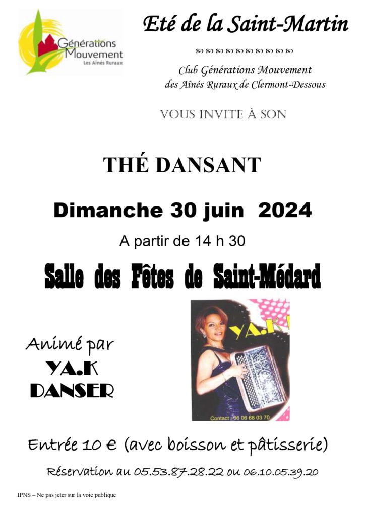 Sur les coteaux du Pays de Serres, le club de l’Eté de la Saint-Martin vous attend pour un après-midi placé sous le signe de la musique et de la bonne humeur, avec un thé dansant animé par l’orchestre YA.K DANSER.