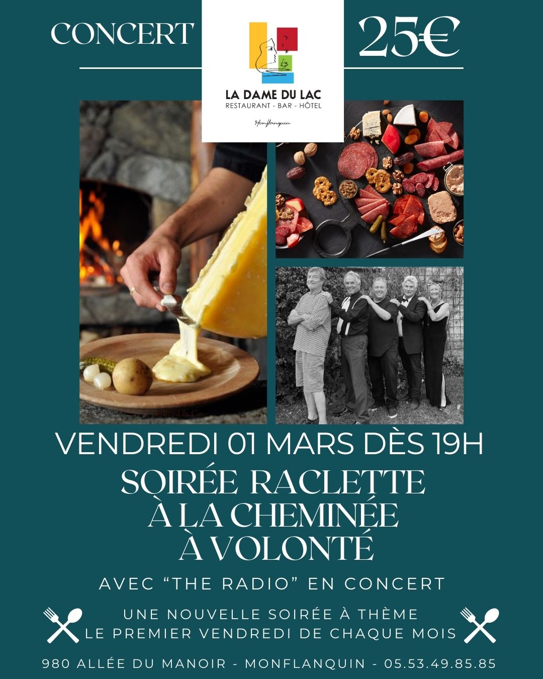 On débute le Vendredi 1er Mars avec une raclette à la cheminée à volonté.