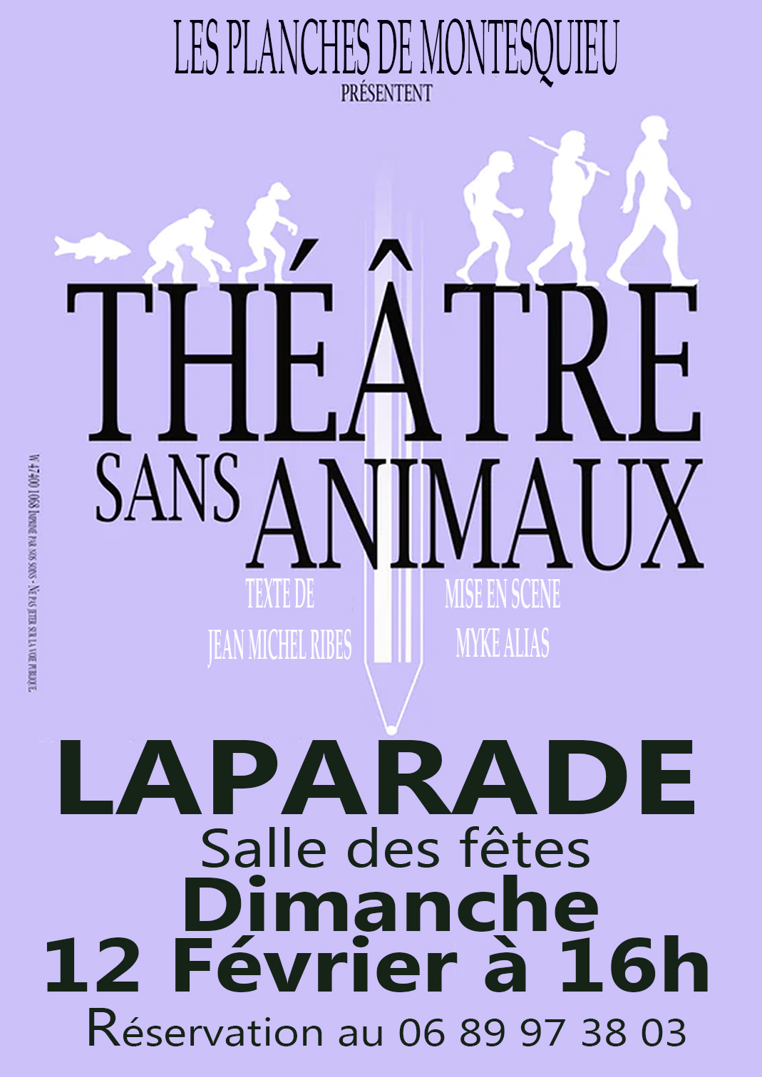 Le foyer rural de Laparade et son atelier théâtre Altitude 182 sont heureux de vous proposez la pièce de Jean-Michel Ribes « Théâtre sans animaux ».