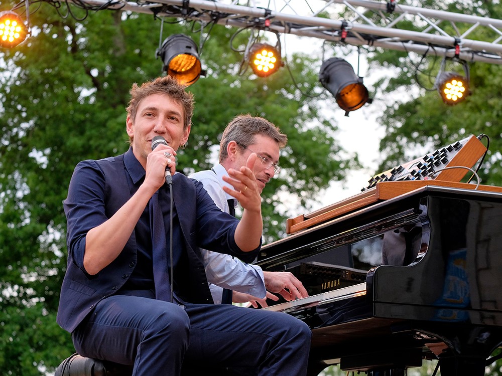 TIOU propose un spectacle intimiste, original et convivial, il a une réelle qualité d’écriture mêlant émotion et humour, une forte présence scénique, en duo accompagné d’un pianiste.