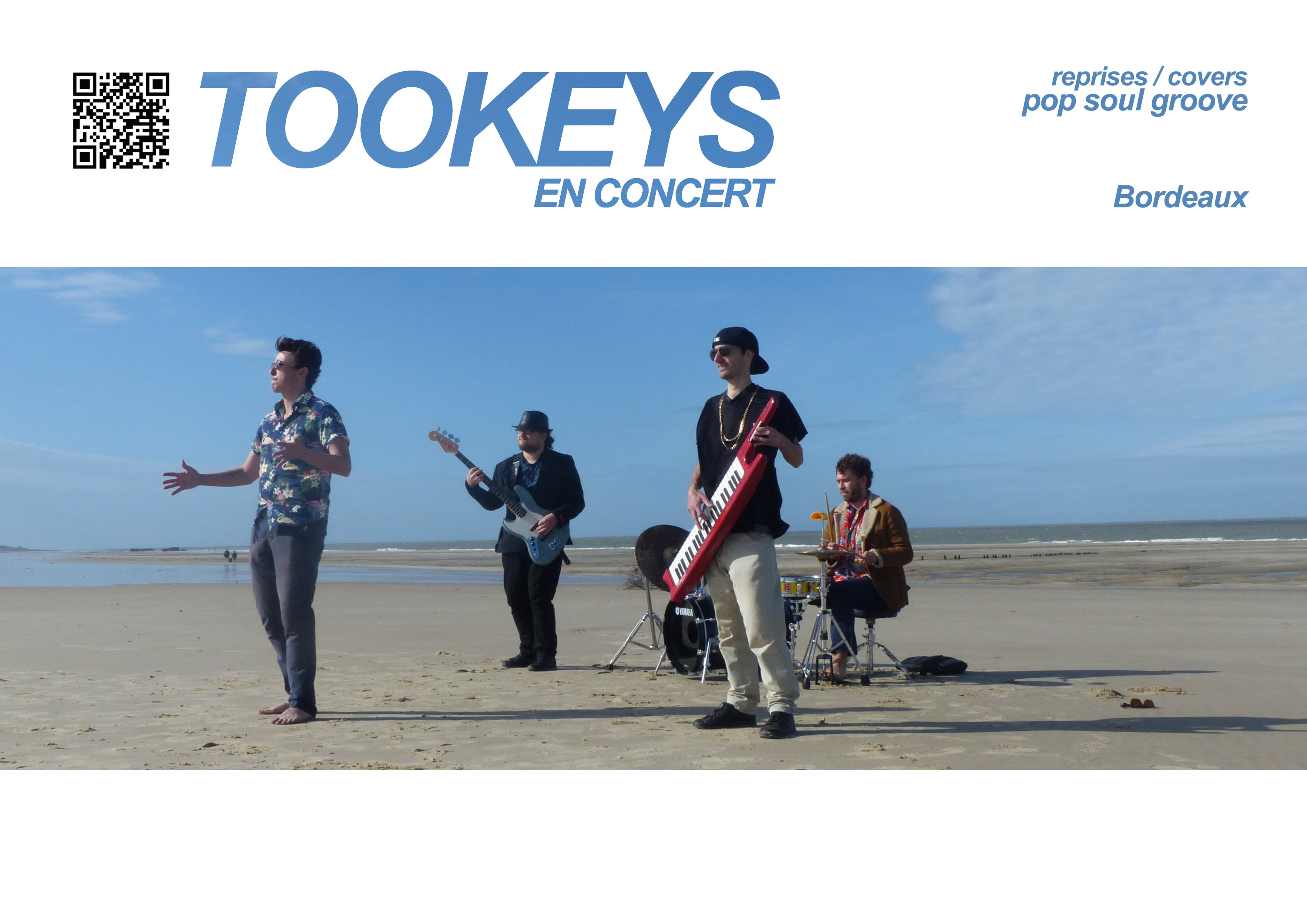 Issu de la nouvelle scène musicale, « Tookeys » nous emporte dans son univers pop, soul, groove rythmé et envoûtant. Ils reprennent les plus grands avec brio : Ray Charles, Stevie Wonder, Sting…