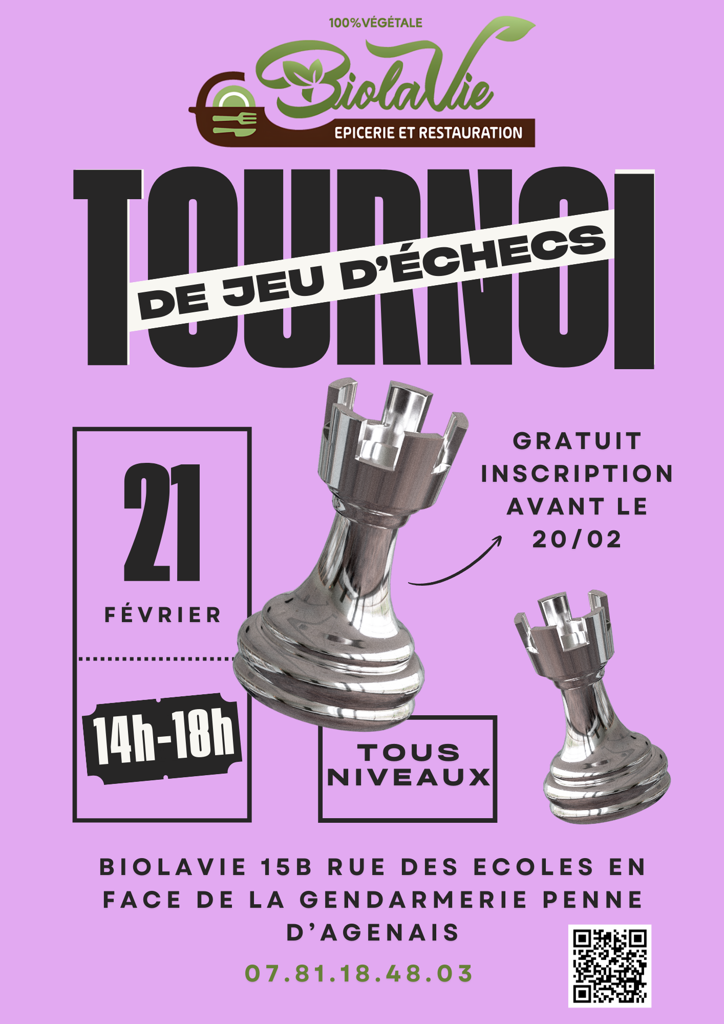 Venez vous confronter aux autres joueurs d’échecs dans cette deuxième édition du tournoi de BiolaVie !
