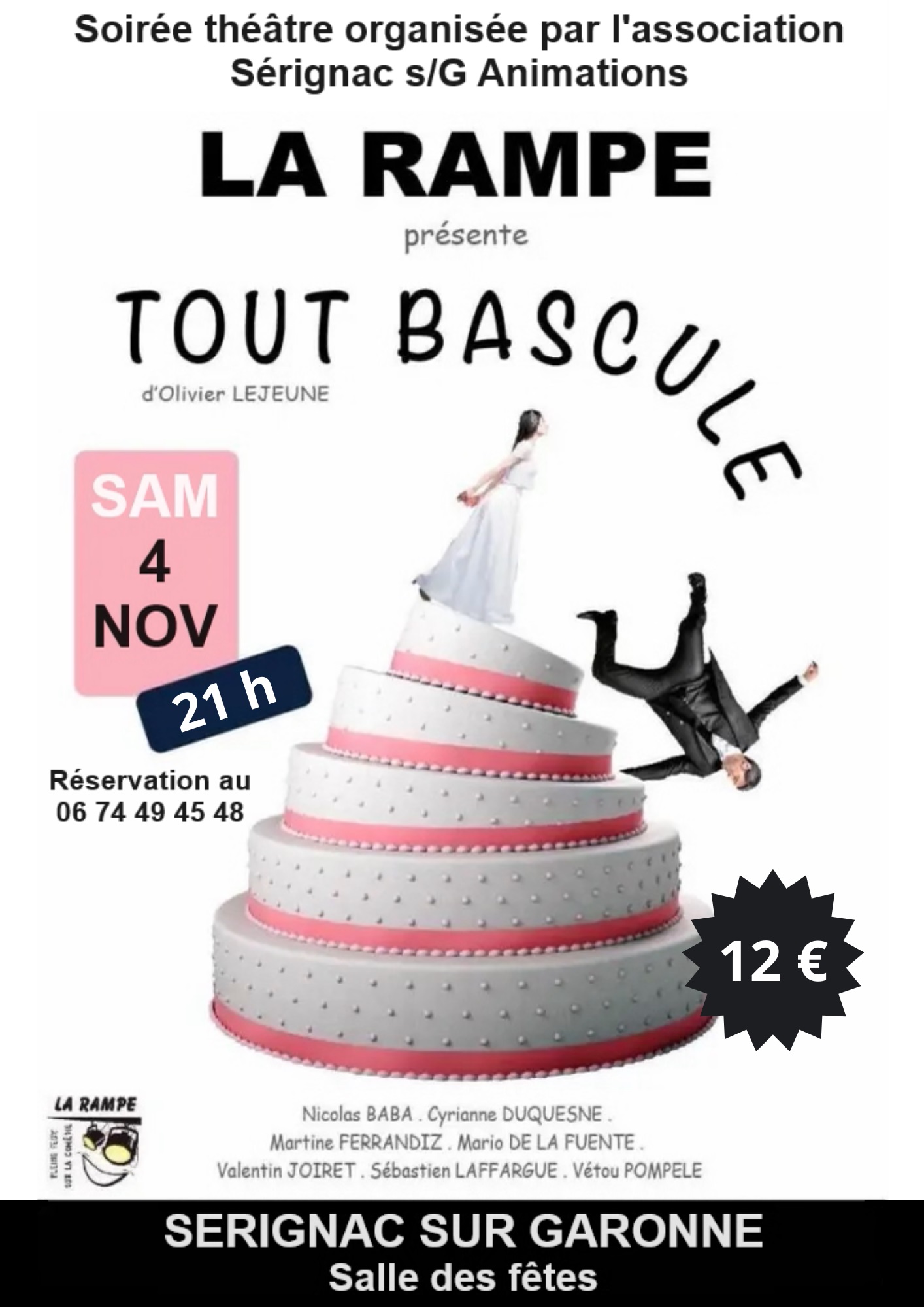 Un déferlement de catastrophes et de quiproquos, des répliques qui font mouche, tels sont les ingrédients de cette comédie au ton résolument moderne où les personnages se déchaînent. Tout s’enchaîne à un rythme d’enfer et jusqu’à la dernière minute. TOUT BASCULE !