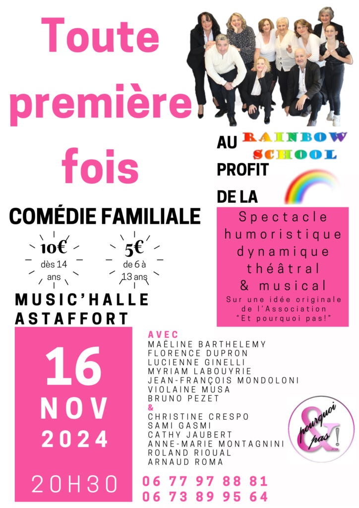 Pour la première fois, l’association « Et pourquoi pas ! » va vous présenter à Astaffort son premier spectacle et ainsi, pour la première fois, les comédiens vont se retrouver sur la scène de la Music’Halle tous ensemble et certains, pour la première fois.