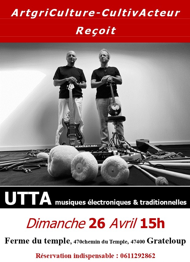 Le duo UTTA réunit les musiciens Xavier Uters, kemanche, setar, ney, et David Taieb Catman, basse, sampler, super space drums, fx.