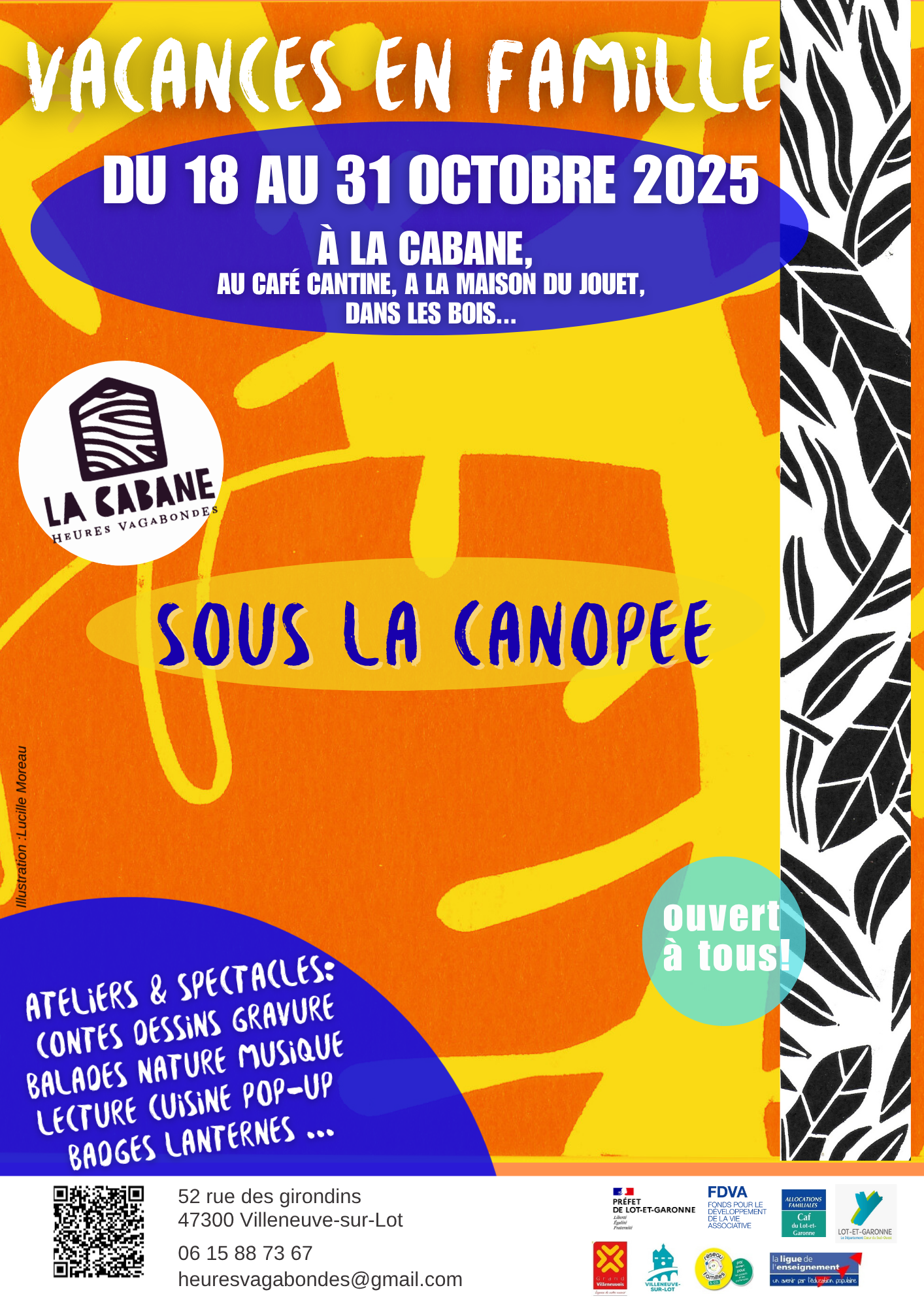 Ces vacances nous explorons la canopée, les arbres seront à l’honneur et les bottes peut-être utiles ! Profitons des couleurs de l’automne et du plaisir de faire ensemble.