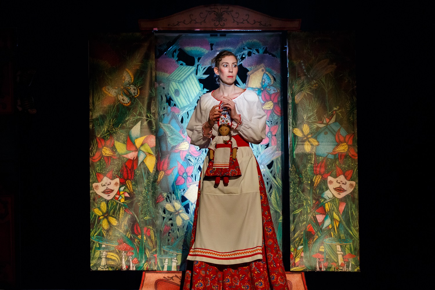 s’inspire des livres pop-up, une comédienne seule en scène interprète tous les